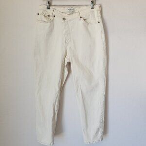 Abercrombie & Fitch The Dad Curve Love Crossover Overlap Waist Jean High Rise Button-Fly Ivory