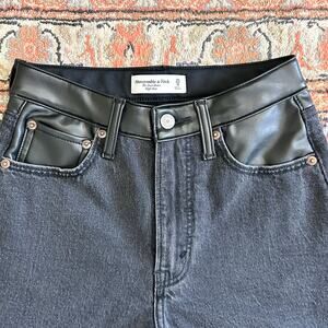 Size 0/25 Abercrombie & Fitch shorts. Faux leather and black denim shorts. The fabric has a little stretch. High-rise waist with a zipper fly. No flaws, great condition!