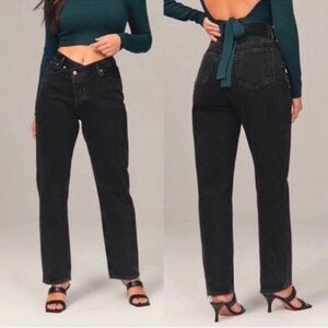Abercrombie & Fitch The Dad High Rise Black Wash Curve Love Button Fly Jeans 25
