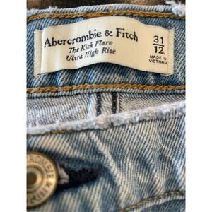 Abercrombie & Fitch The Kick Flare Ultra High Rise light wash distressed 31/12