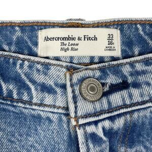 Abercrombie & Fitch The Loose High Rise Jeans. Distressing. Light wash. 38% cotton, 31% recycled cotton, 31% lyocell. Size 33/16R. Please see photos for measurements.
