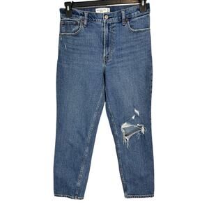 Abercrombie & Fitch The Mom High Rise Jeans Busted Knee Medium Wash Sz 28 / 6s