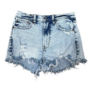 Abercrombie & Fitch The Mom Short High Rise 25 0 Distressed Denim Cutoffs Light