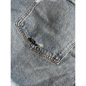 Excellent condition. Intentional factory distressing. Brand tag has been delabeled (black line through tag)