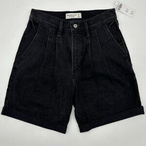 Abercrombie & Fitch The Pleated Shorts Size 2/26 Ultra High Rise Black Denim NWT