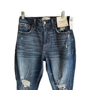Keywords: Abercrombie & Fitch, Skinny Jeans, High Rise, Distressed Jeans, Ripped Jeans, Dark Wash, Frayed Hem, Denim, Casual, Fashion, Women's Jeans, New with Tags