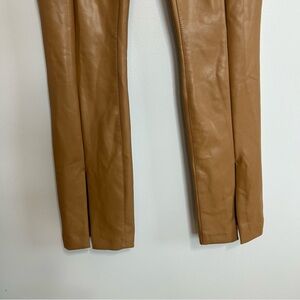 Stylish tan faux leather pants. Perfect for versatile wear. Comfortable and chic design.