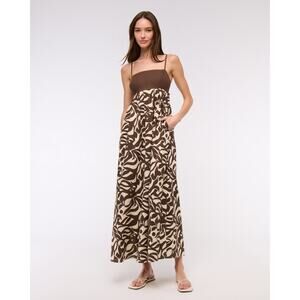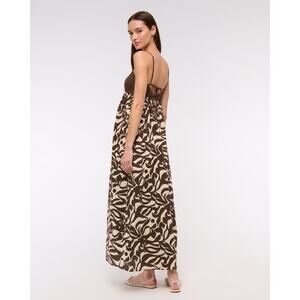 Abercrombie & Fitch Tie Back Brown Square Neck Babydoll Linen Maxi Dress