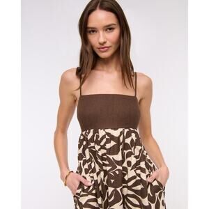 Abercrombie & Fitch Tie Back Brown Babydoll Linen Maxi Dress Small Petite