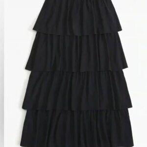 Abercrombie & Fitch Tiered Crinkled Maxi Black Skirt XSmall XS