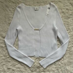 Abercrombie & Fitch Top Slim Bar Closure Open Cardigan Knit Ribbed White XS NWT New