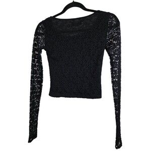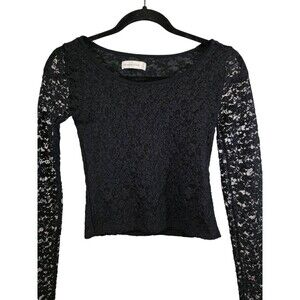 Pre-owned Abercrombie & Fitch black lace Y2K top size XS. Stretchy pullover style with long sleeves. Lined body with sheer lace sleeves.