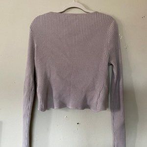Abercrombie and Fitch twist front taupe (grey/brown) ribbed sweater/shirt in size large. This is new without tags. Very cute and light weight cropped top - just not the right fit for me!