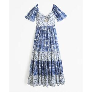 Abercrombie & Fitch Twistfront Tiered Maxi Dress - M Petite - Blue Pattern
