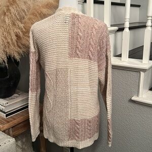 Abercrombie & Fitch Two Tone Cream Knit Long Sleeve Cardigan Sweater Size Small