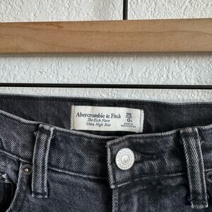 Abercrombie & Fitch Ultra High Rise Frayed Kick Flare Denim Jean Washed Black 25