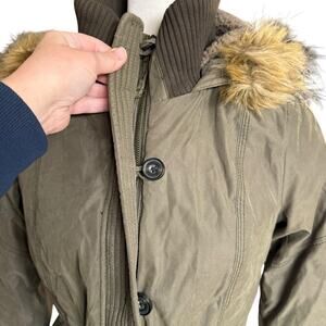 Abercrombie & Fitch Utility Parka Womens L Green Sherpa Lined Faux Fur Hood