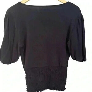 Abercrombie & Fitch black knit top with a V-neck, cinched elastic waist detail, and tie front.