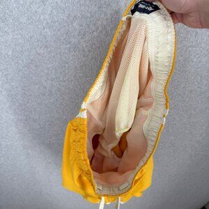 Abercrombie Fitch VTG Swim Trunks Size L Yellow White Logo Flip Waist Beach