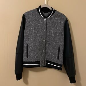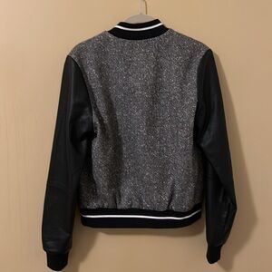 Abercrombie & Fitch Varsity Jacket Wool Blend Tweed Bomber Gray Black Size M