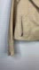 Front zipper closure (off center), wide lapels, long sleeves with zippers at the cuffs.