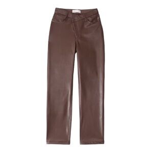 Abercrombie & Fitch Vegan Leather 90’s Straight Criss Cross Waist Pant Brown