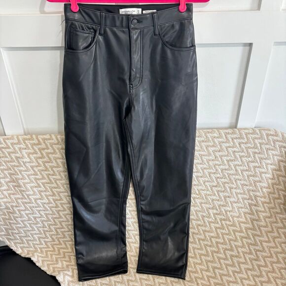 Abercrombie & Fitch Vegan Leather Ankle Straight Ultra High Rise Pants NWT