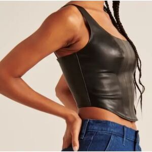 Abercrombie & Fitch Vegan Leather Corset Scoop Neck Tank Top Taupe Beige - Med
