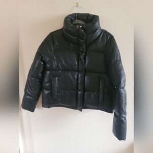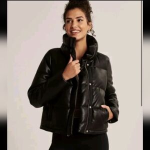 Abercrombie & Fitch, Vegan Leather Mini Puffer, Black, Size Large.