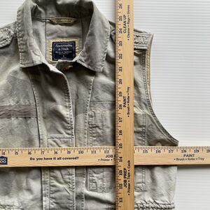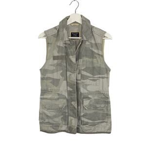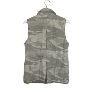 Abercrombie & Fitch Vest Womens Small Green Camouflage Snap Pockets Cinch Waist