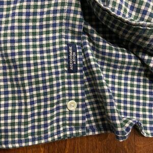 Update your fall wardrobe with this Abercrombie & Fitch Vintage Plaid Green Blue Button Front Shirt Flannel for Men. With its long sleeve design and cotton and wool blend fabric, this pre-owned shirt is in great condition and is a must-have for a classic and comfortable look.