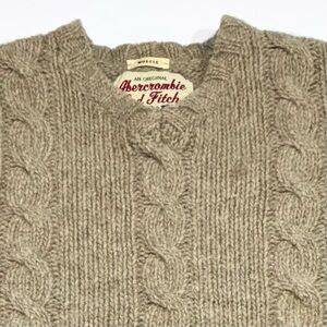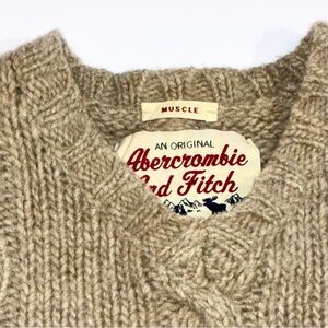 Abercrombie & Fitch Vintage Sweater Mens Large Beige Cable Knit Wool Fisherman