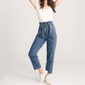 ABERCROMBIE & FITCH Paper Bag Jeans. High Rise Straight Leg Mom Jeans with Elasticized Waist + Ribbon Belt. Retro Cute Medium Wash Jeans with Subtle Distressing. Flattering Fit + Super Comfortable
