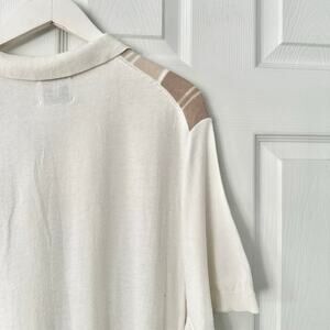 Abercrombie Fitch White Beige Tan Stripe Button Up Knit Polo Collared Shirt XXL