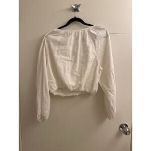 Elegant white blouse with long sleeves. Features a tie-front detail. Perfect for casual or formal wear.
