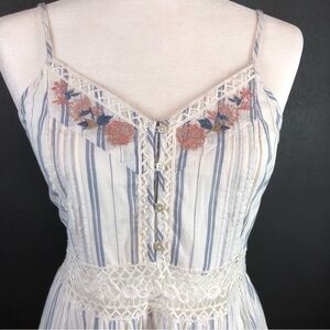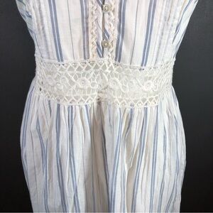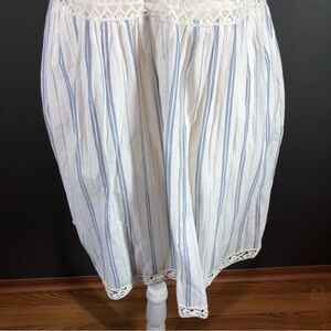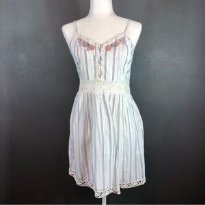 Abercrombie & Fitch White Blue Striped Embroidered Lace Pierced Skater Dress