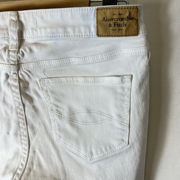 Abercrombie & Fitch White Denim Mid-Rise Fray Hem Jean Shorts Size 6/28