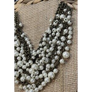 Abercrombie & Fitch White Faux Pearl Necklace Antique Gold Cha Cha Coquette