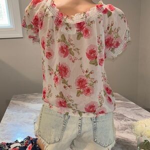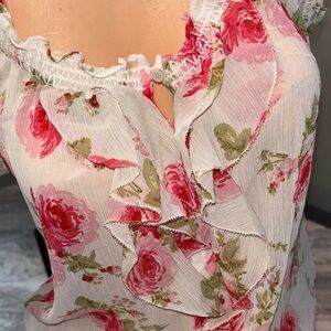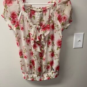 This charming blouse from Abercrombie & Fitch showcases a flutter sleeve design with ruffled accents, adding a touch of elegance to your ensemble. Available in a pristine white color, it offers a versatile and stylish option for any occasion. The lightweight fabric ensures comfort and a graceful silhouette.
