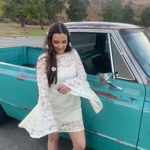Abercrombie & Fitch White Lace Bell Sleeve Shift Dress Size Medium