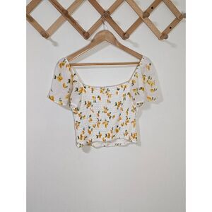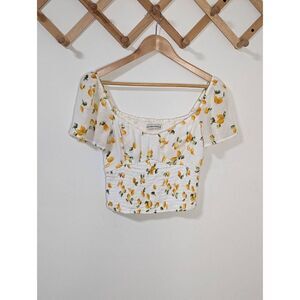 Abercrombie & Fitch White Lemon Print Smocked Waist Crop Top - Size S