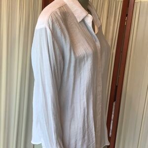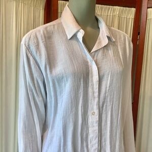 Abercrombie & Fitch white gauzy crinkle shirt. It is a collared button down in