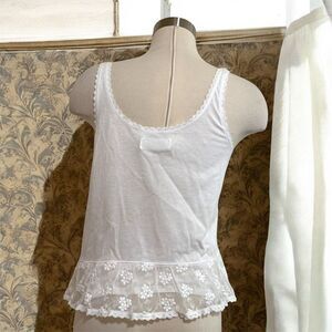 Abercrombie & Fitch white sleeveless, scoop neck, lace trim, mesh floral peasant style blouse top.