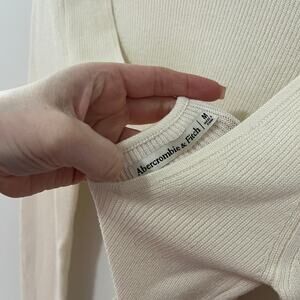 Abercrombie & Fitch White Ribbed Knit Cutout Bodysuit Size Medium. Excellent condition, like new. White/cream color. Snap closure at crotch. Mockneck. Fitted.