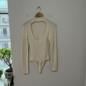 Abercrombie & Fitch White Ribbed Knit Cutout Bodysuit Size Medium