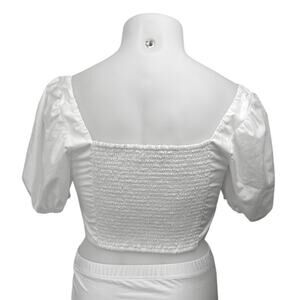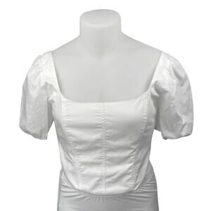 Abercrombie & Fitch White Short Puff Sleeve Smocked Corset Blouse Crop Top Size L