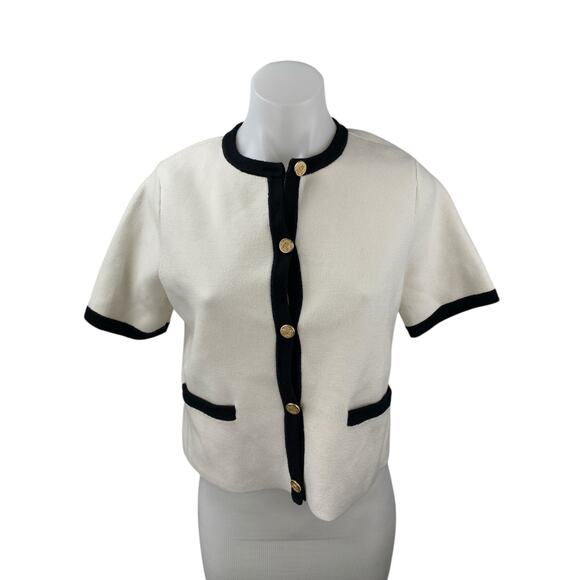 Abercrombie & Fitch White Short Sleeve Button Down Pockets Cardigan Sweater Size S