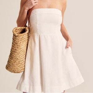 Abercrombie & Fitch White Strapless Linen Blend Mini Dress