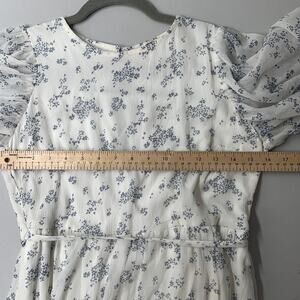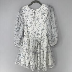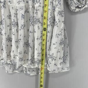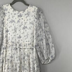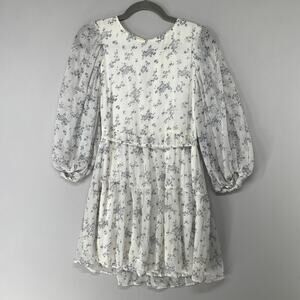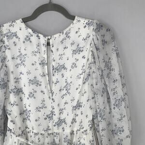 Abercrombie & Fitch Women Dress S White Blue Floral Sheer Balloon Sleeve Chiffon