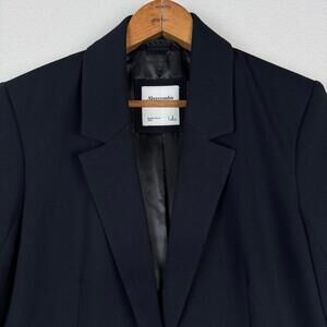 Abercrombie & Fitch Women Navy Blue Long Sleeve Blazer Coat Suit Jacket Size S